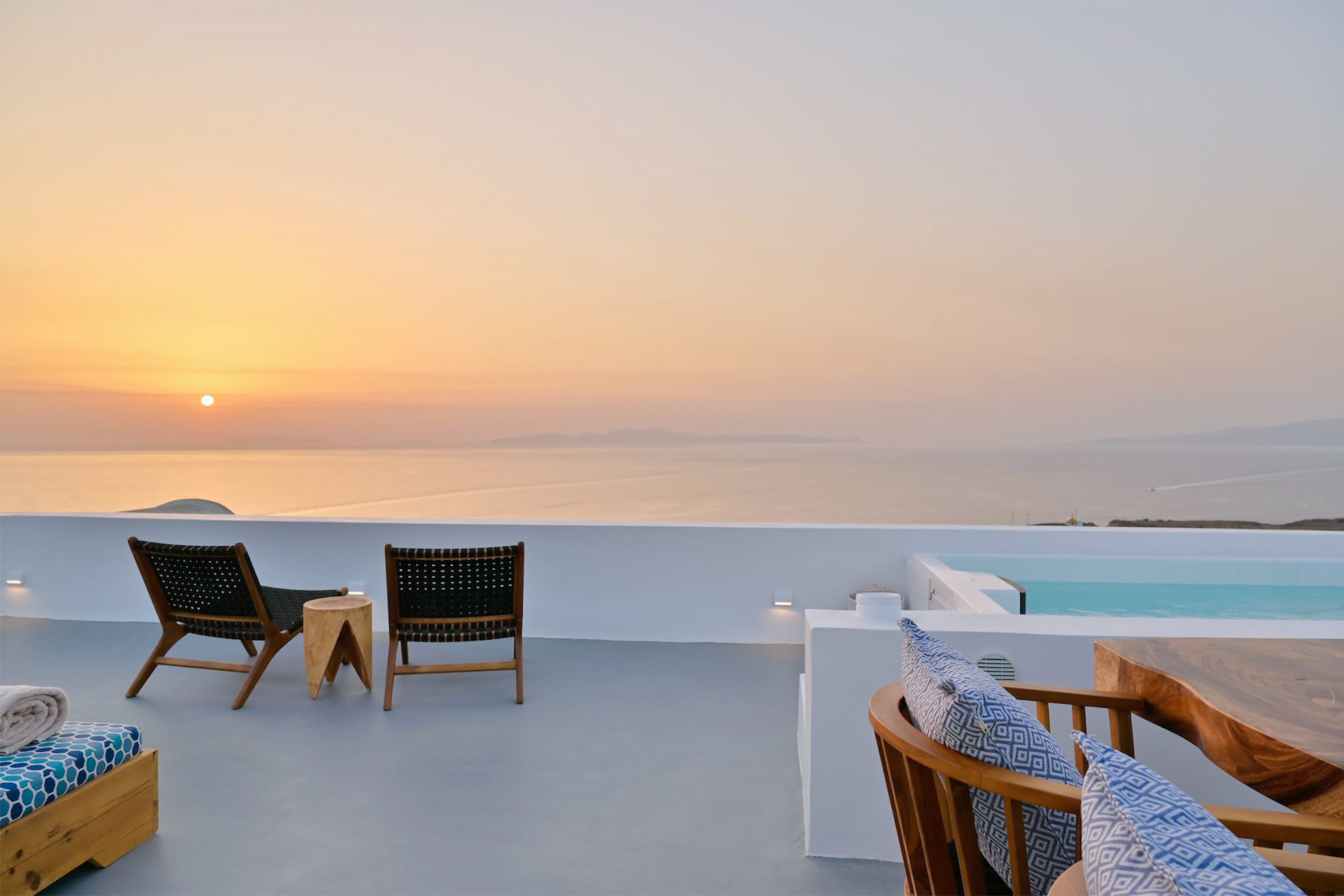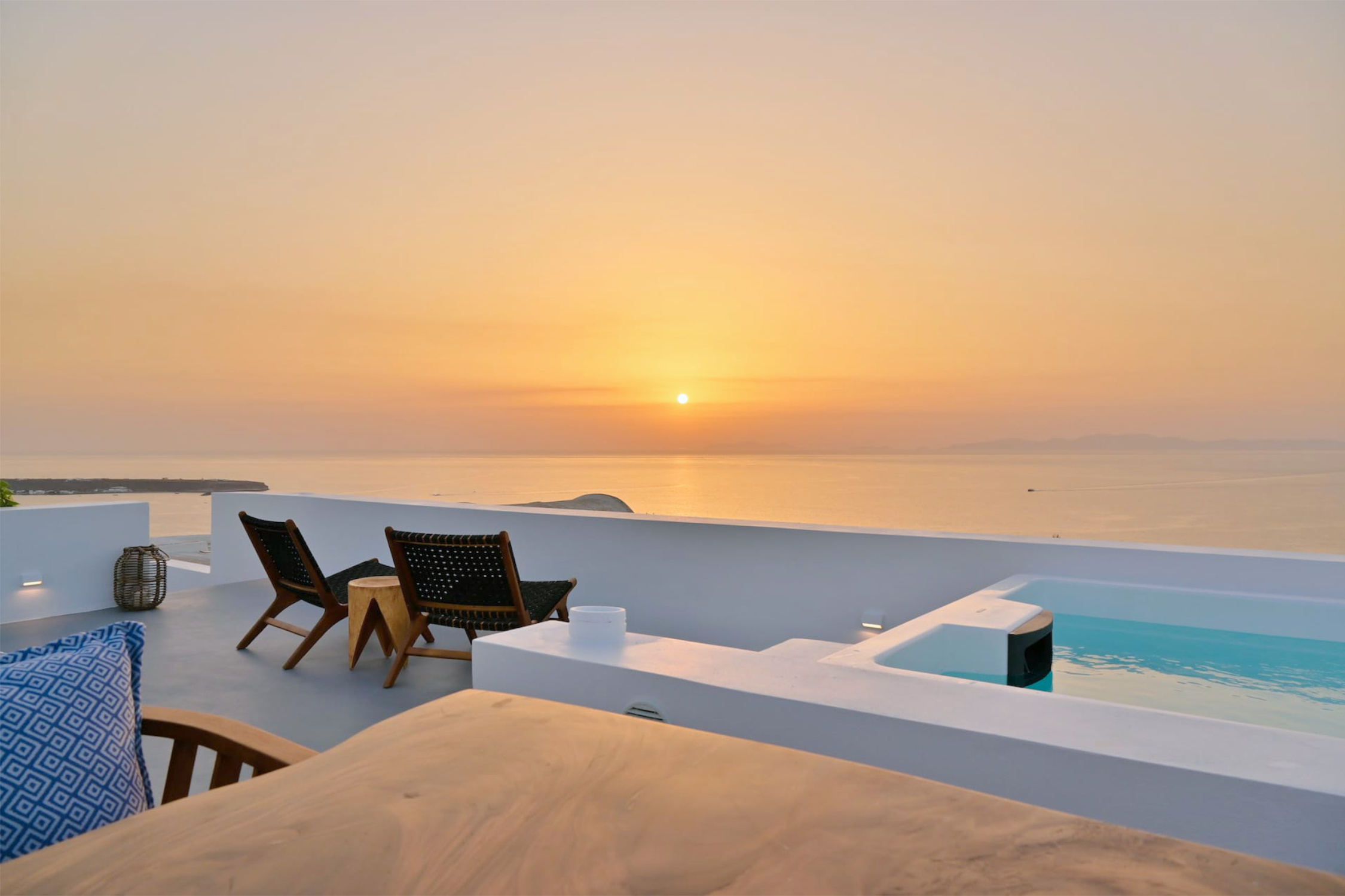 The fully furnished and renovated (2020) property comprises two bedrooms, a kitchen, a living room, a large veranda and a roof terrace with a private plunge pool.