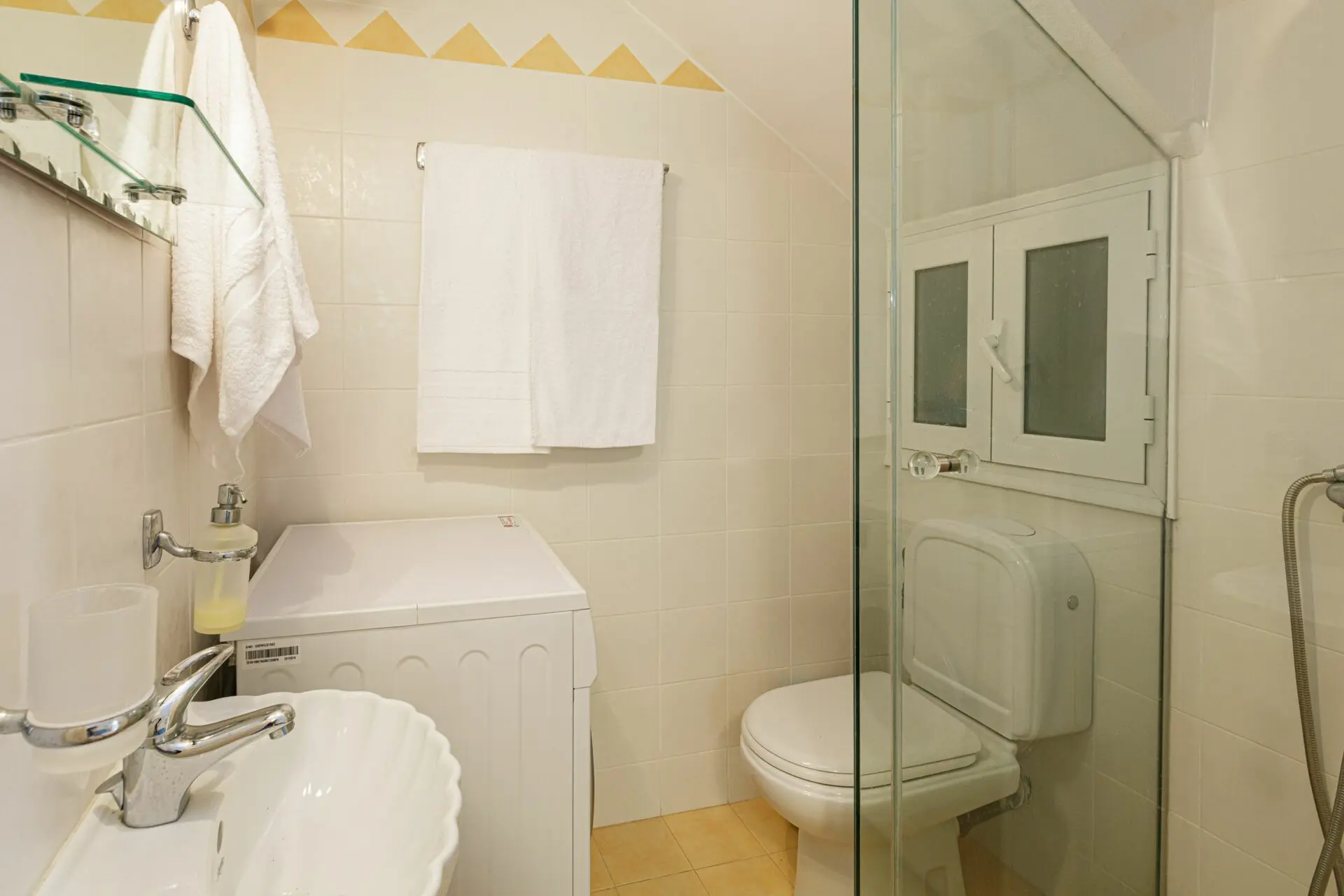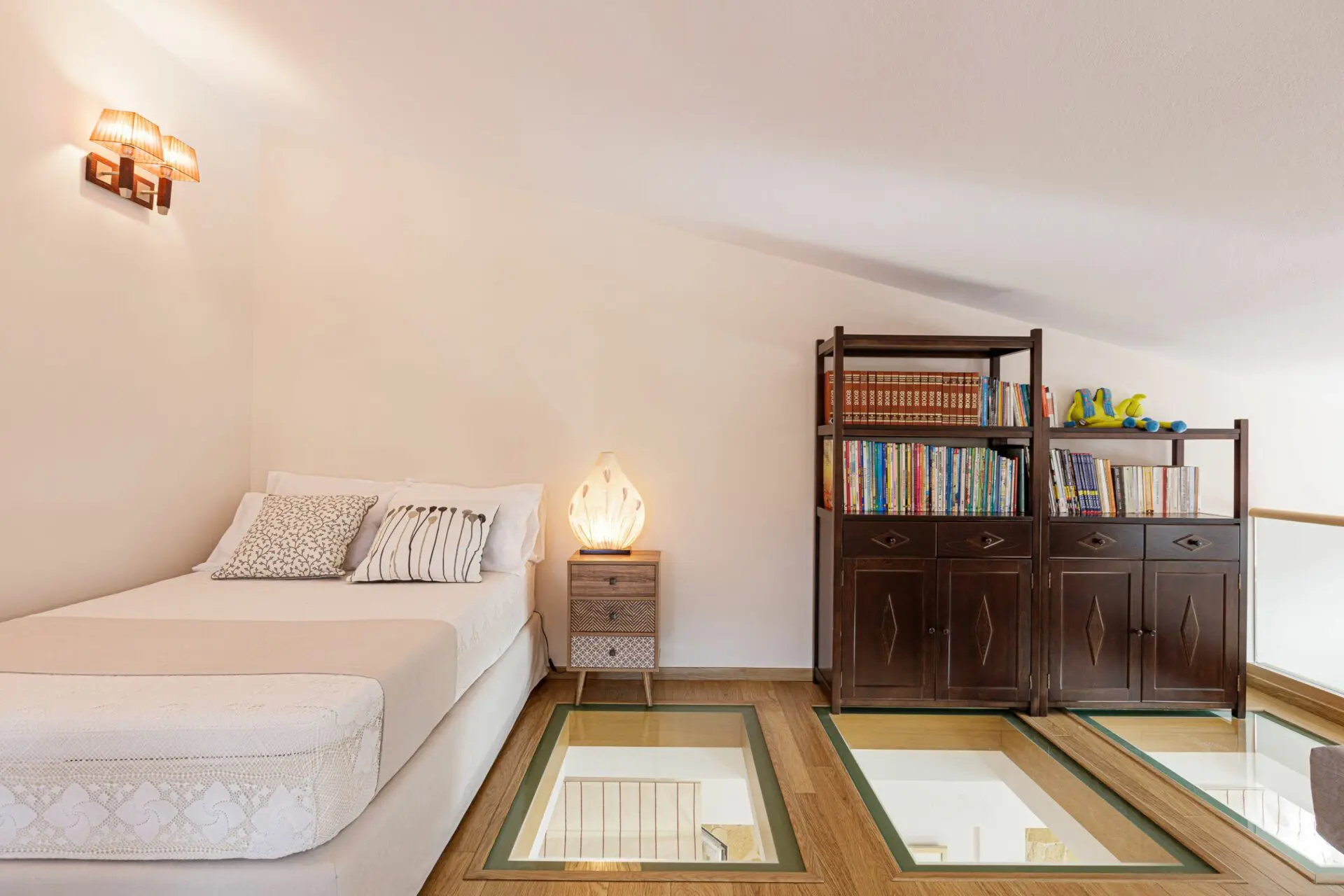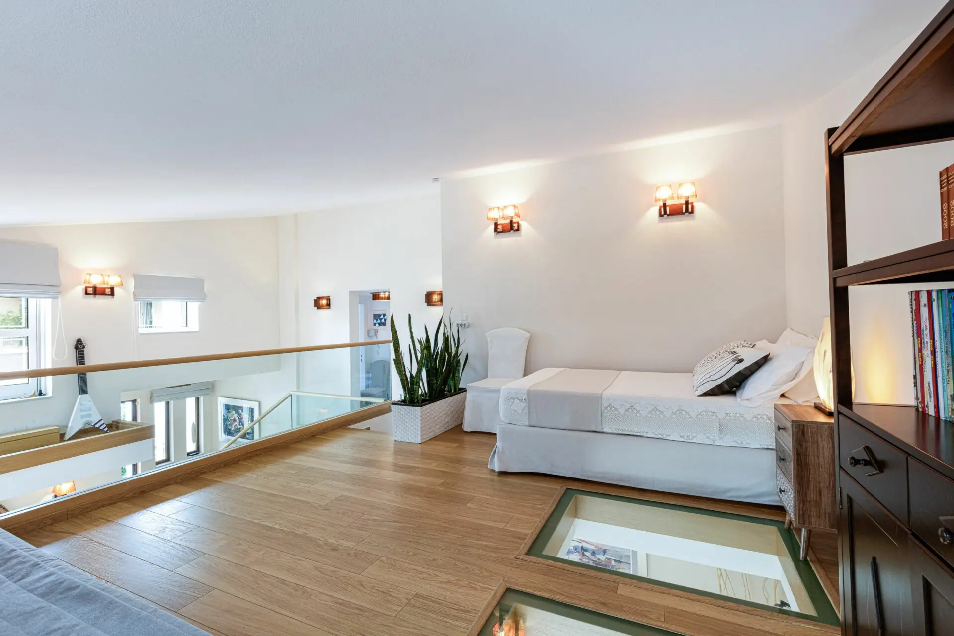 The villa also features a self-contained lower-floor apartment, which includes a lounge area with a kitchenette, a bedroom with a king-size bed, a bathroom with a shower cabin, and a drawing room with direct access to a patio area and small garden. This apartment has its own private entrance. The property is sold fully furnished and equipped.